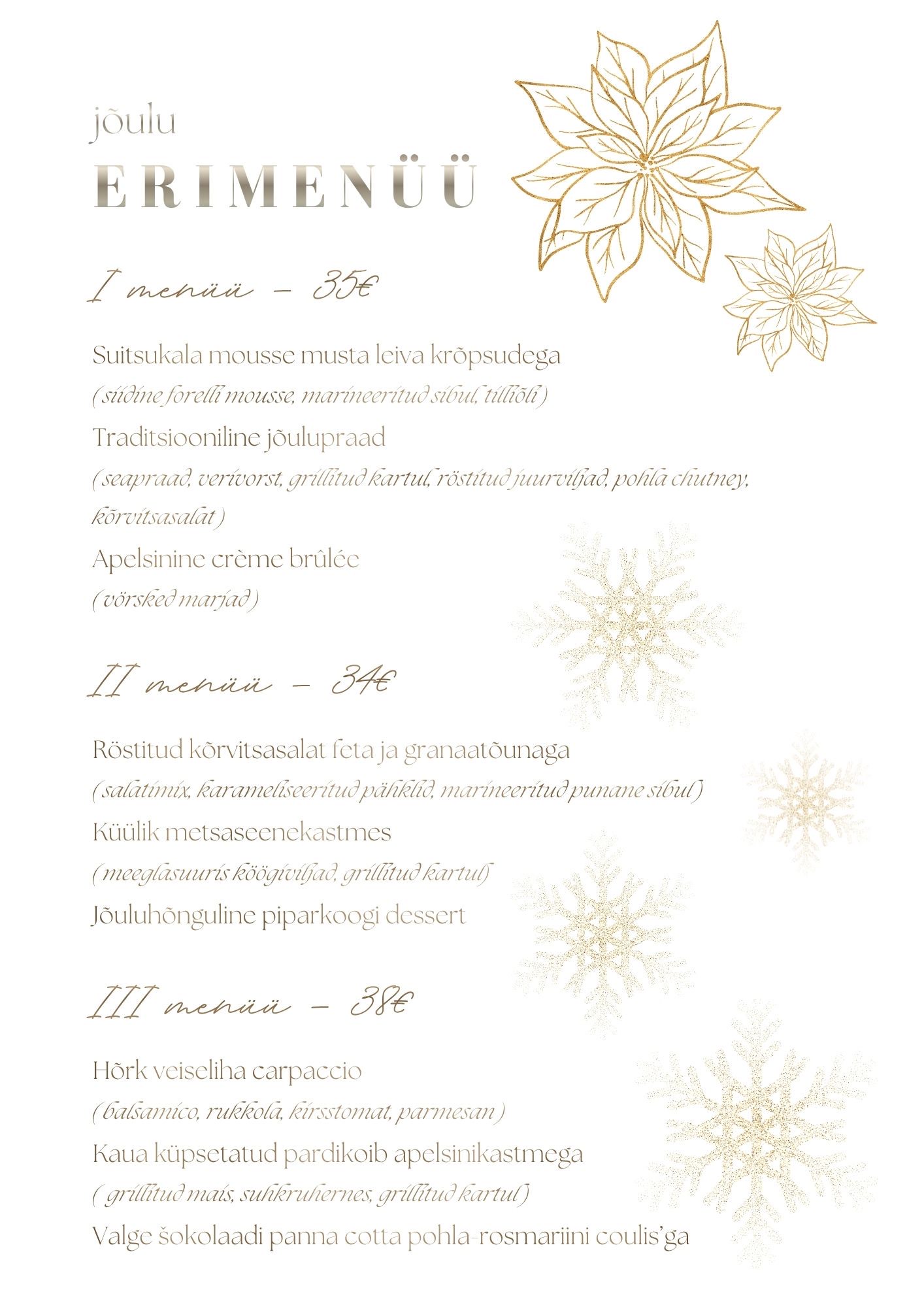 Meie restorani peakokk on loonud pühadeajaks jõulu erimenüü, millega on nüüd võimalik siin tutvuda.